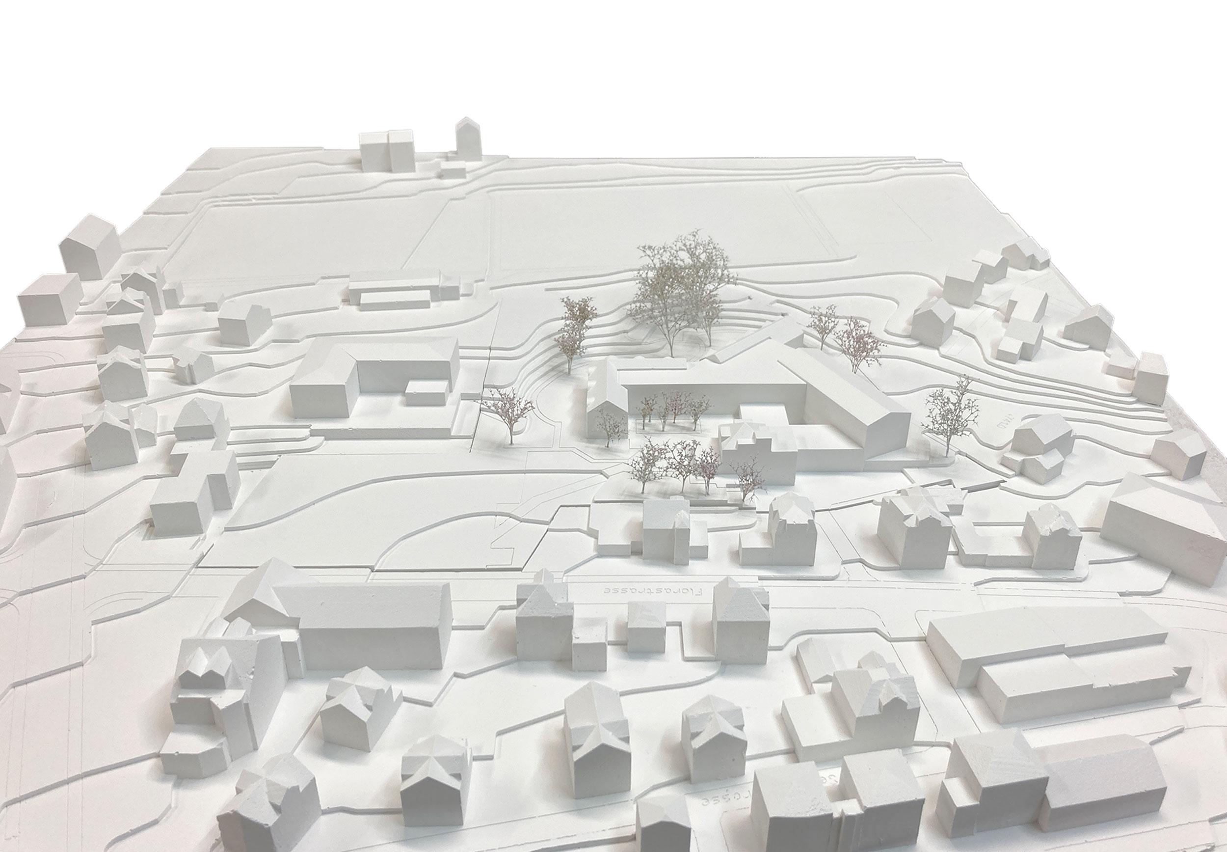 Die bestehende Anlage aus dem Jahr 1990 wird in seiner Grundkonzeption erhalten und erweitert. Der neu definierte Hof bildet innerhalb des Ensembles den Schwerpunkt; der «cour d’honneur» funktioniert als Zugang sowie als «Dorfplatz». An ihn stossen die verschiedenen Gebäude und Fassaden, wodurch auf kleinem Raum eine angenehme Vielfallt räumlicher Assoziationen mit Dorf und Wohnbauten anklingen. Die Bewohner erleben vertraute Situationen auf kurzen Wegen. Als Gegenpol bleiben die weitsichtigen, ruhigen Aussenbezüge, insbesondere aus den Bewohnerzimmern, erhalten.