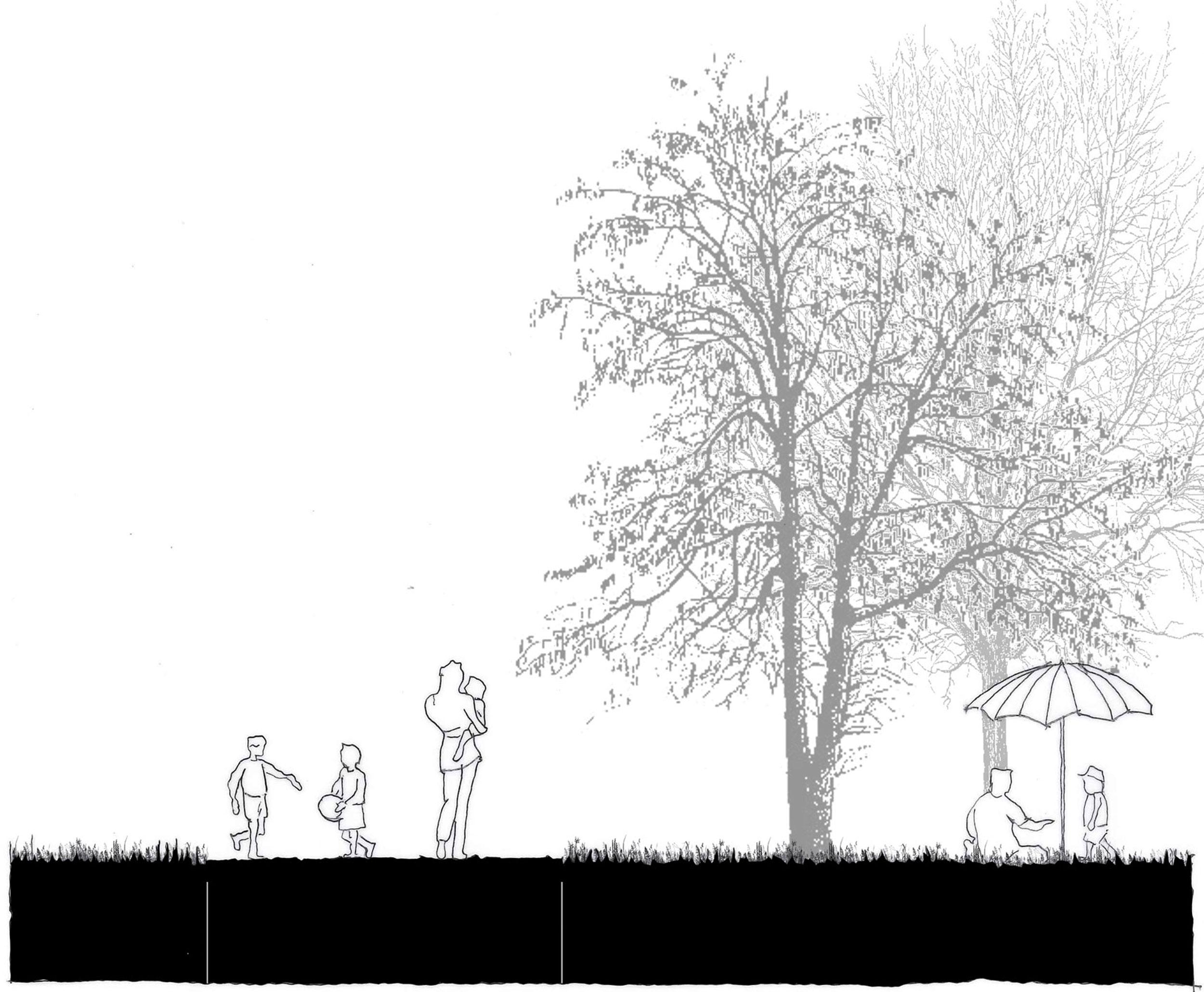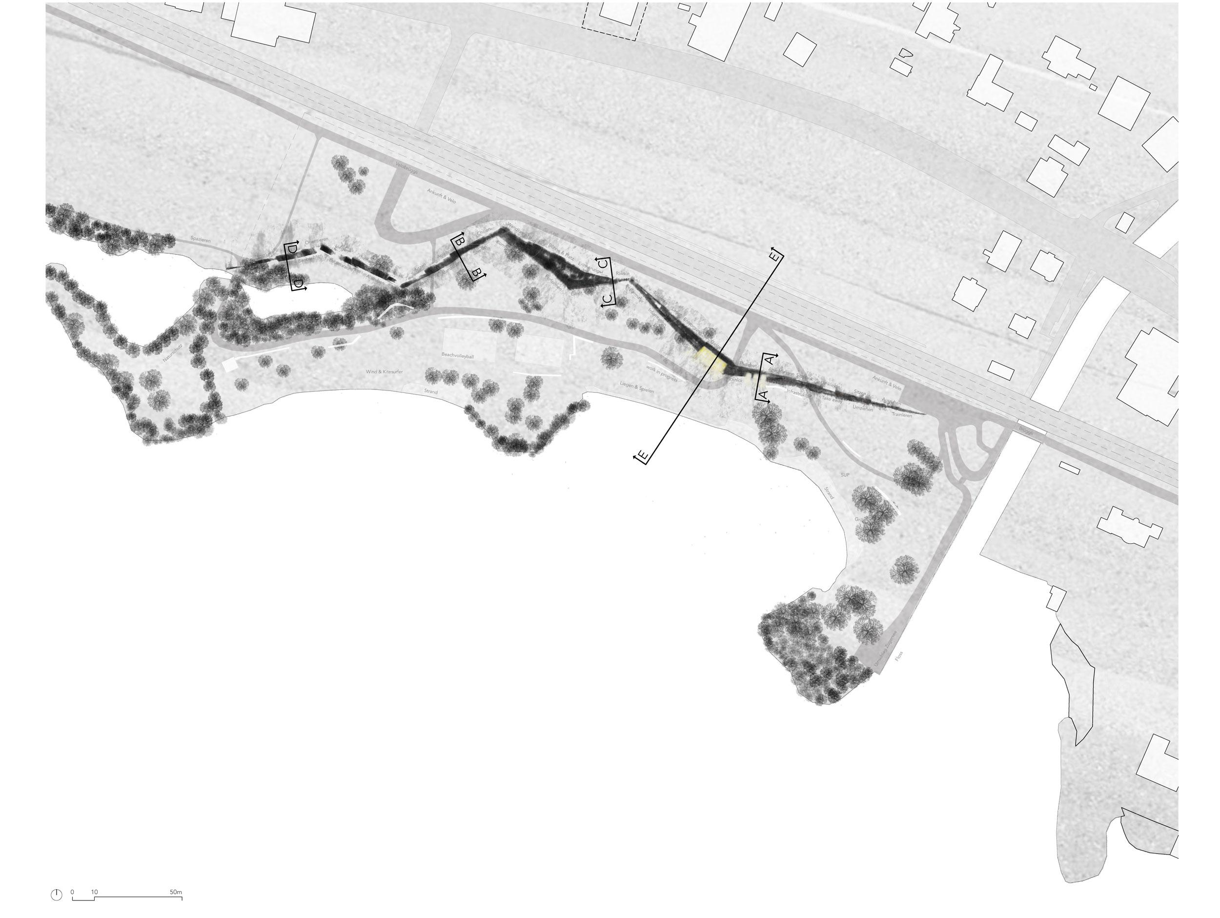 Der Entwurf versteht die Schichten der Landschaft als Aufbewahrungsort für das kollektive Gedächtnis des Ortes. Dabei kommt der Freilegung bestehender Schichten eine zentrale Bedeutung zu, ebenso wie die Klärung und Vermittlung ihrer Zusammenhänge. Diese Lesbarkeit erfolgt subtil, verzichtet auf aufgezwungene Didaktik und wird zu einer atmosphärischen Landschaft zusammengefügt.
